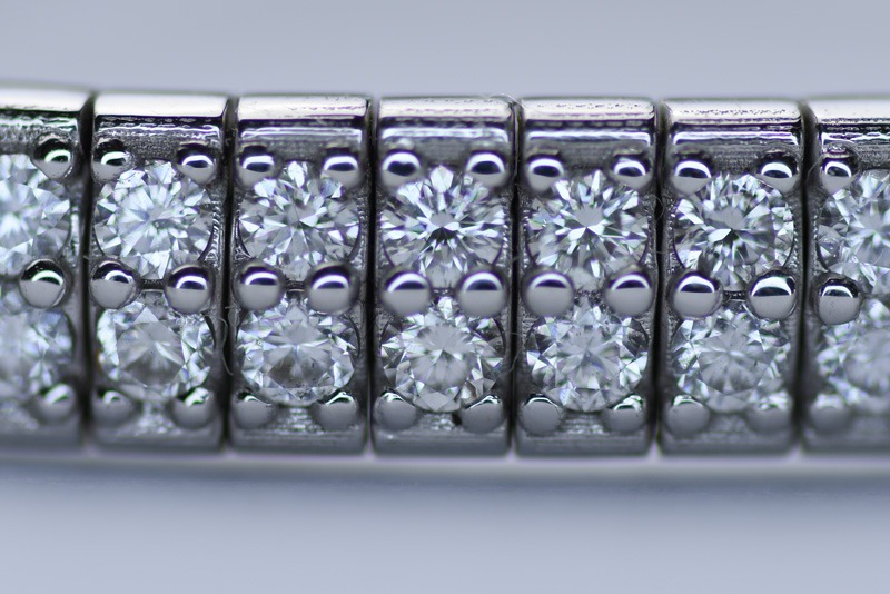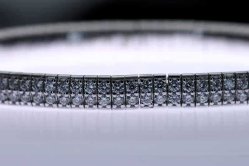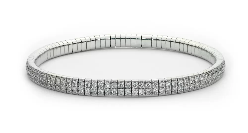 Erleben Sie die bemerkenswerte Eleganz und Einzigartigkeit unseres Diamantbracelets. Im Flex-Bracelet wurden 3.70 Karat natürliche Diamanten in aufwendiger Handarbeit in 18 Karat Weissgold eingefügt.